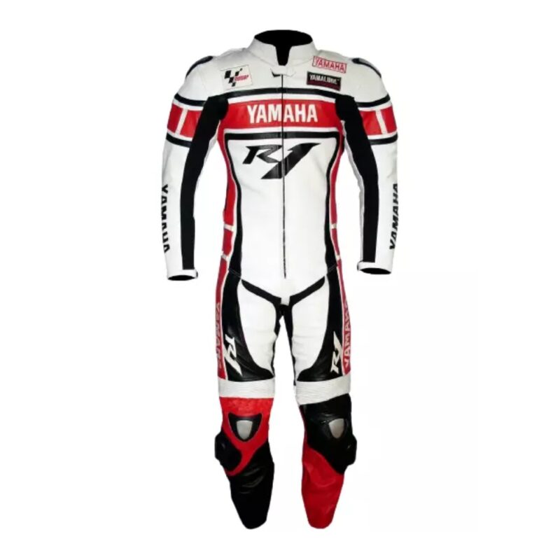 YAMAHA R1 MOTOGP MOTORBIKE LEATHER RACING SUIT WHITE BLACK RED